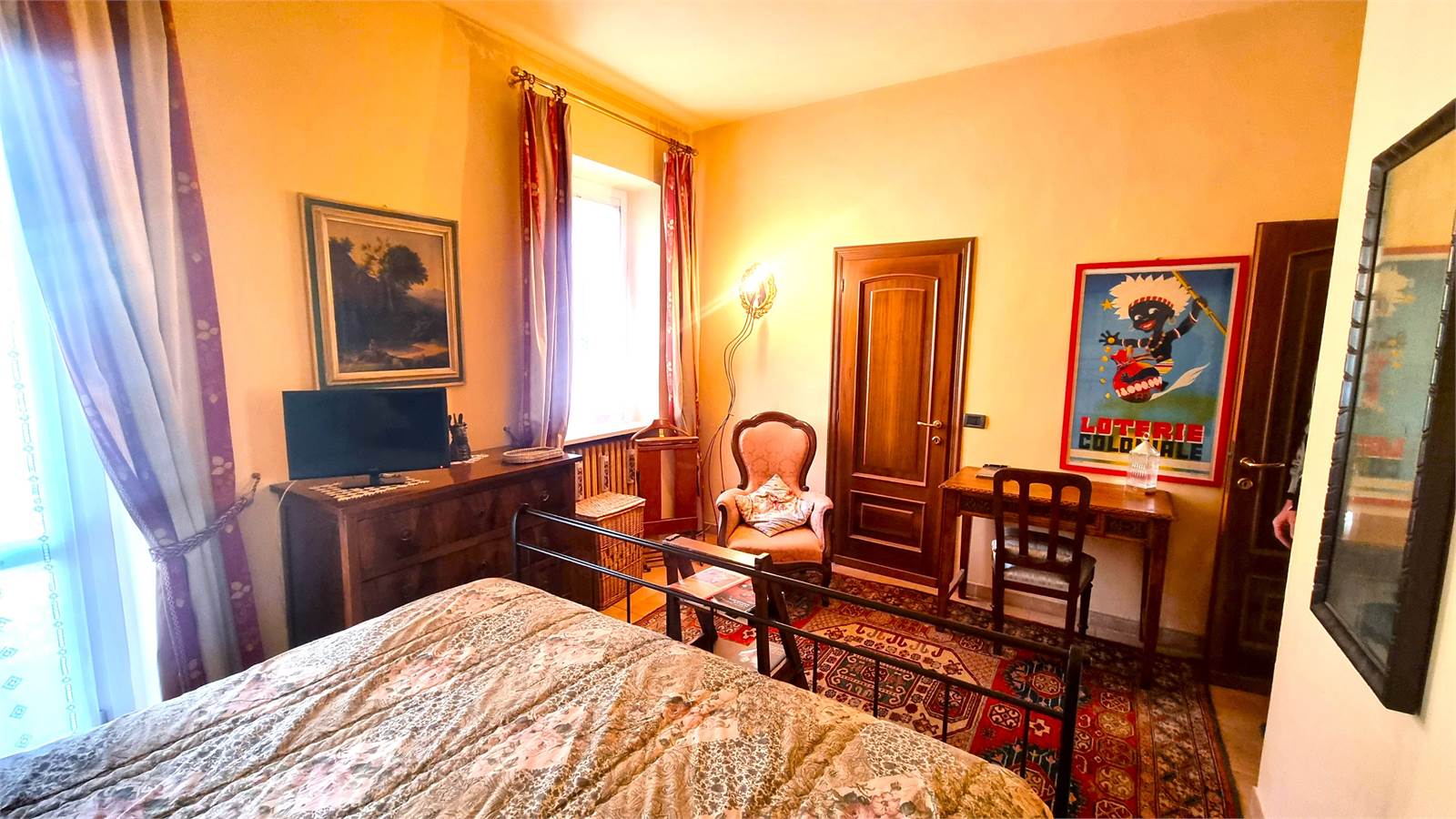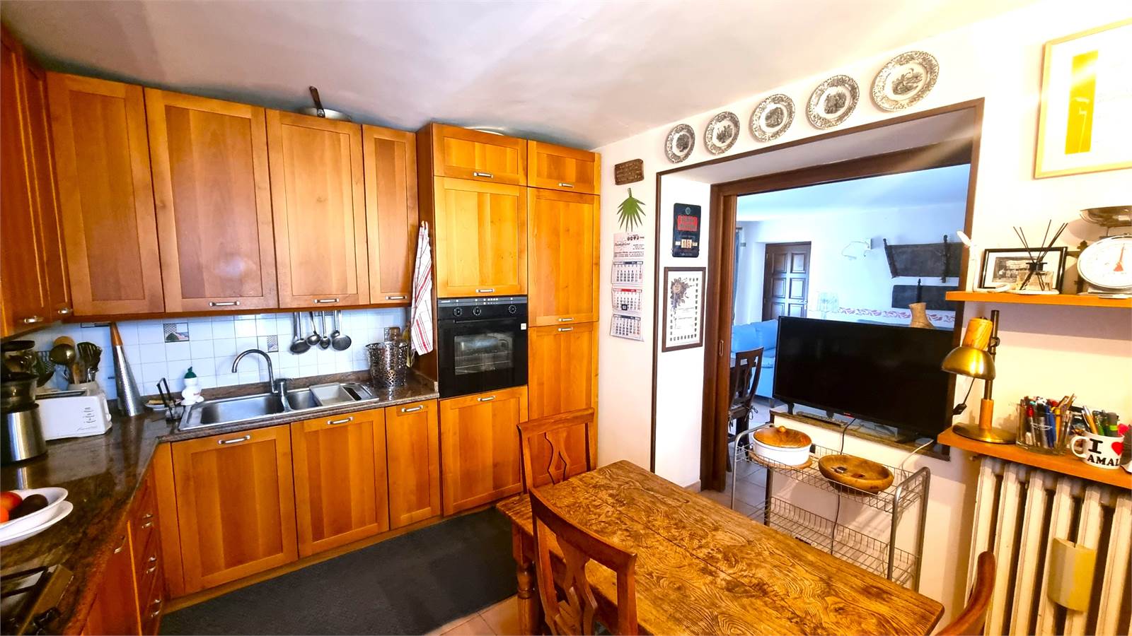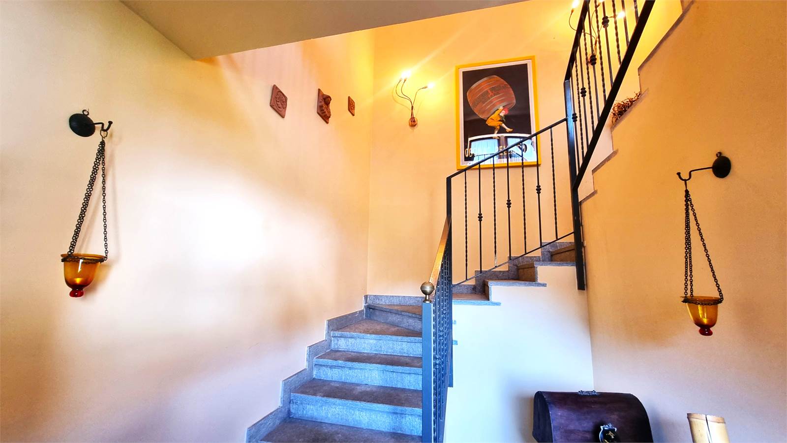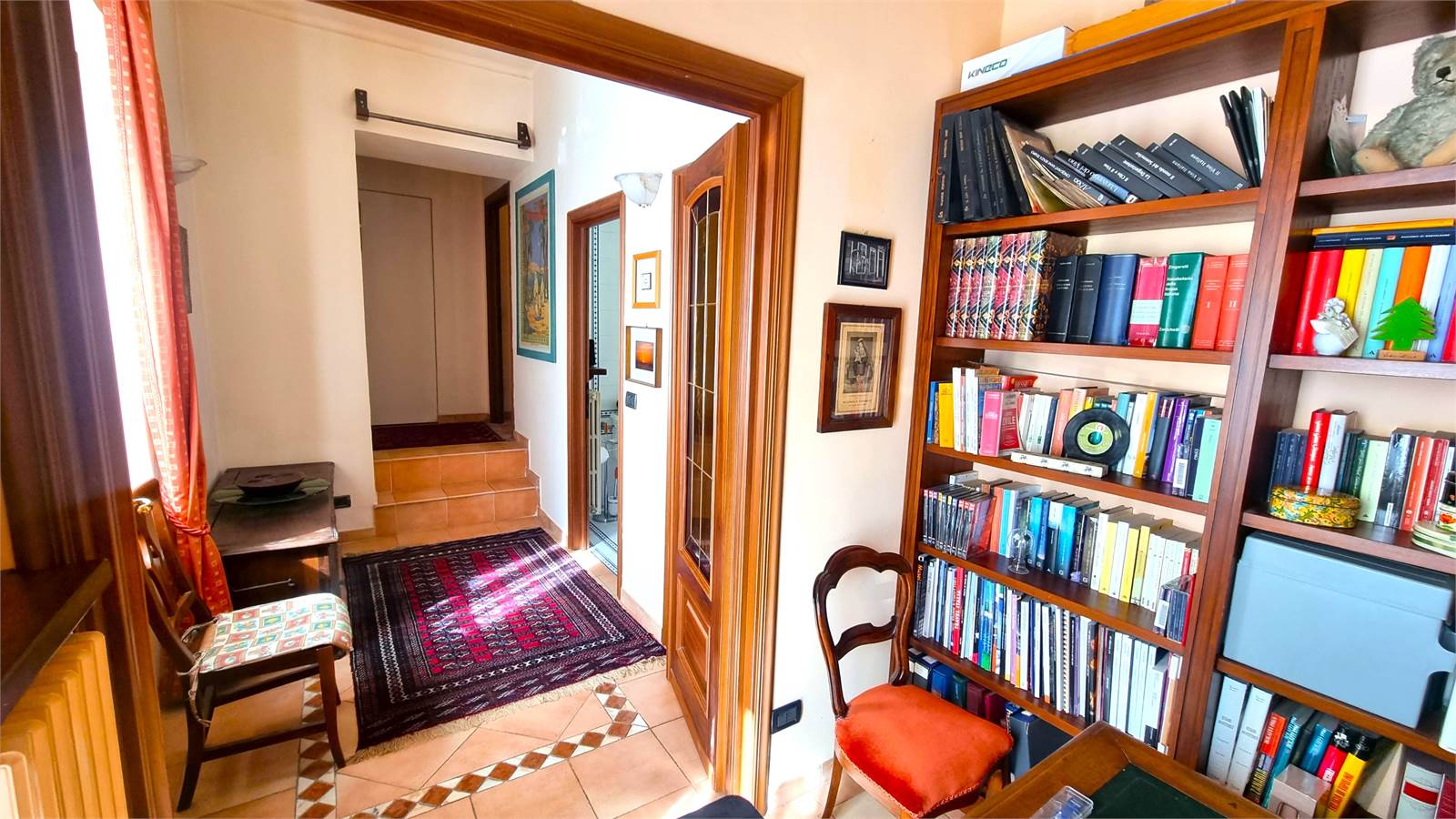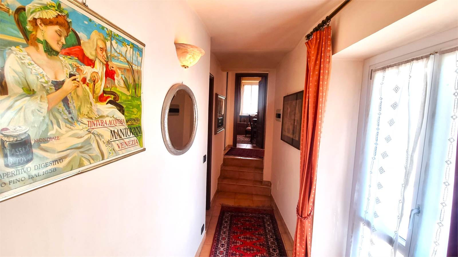 L'abitazione, che gode di tre arie di cui una affaccia su un cortile interno comune, usufruisce di un ingresso indipendente al piano terreno, si sviluppa interamente al primo piano e si completa con un ampio sottotetto.