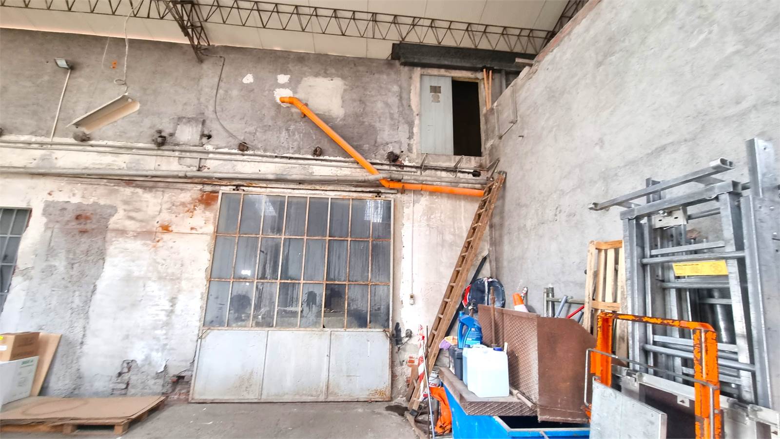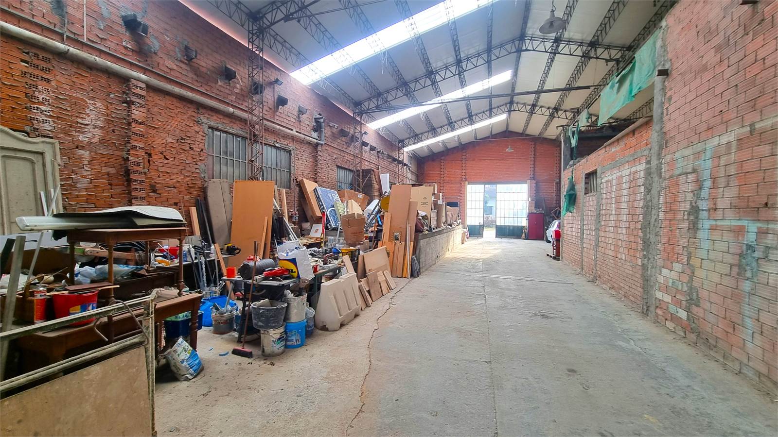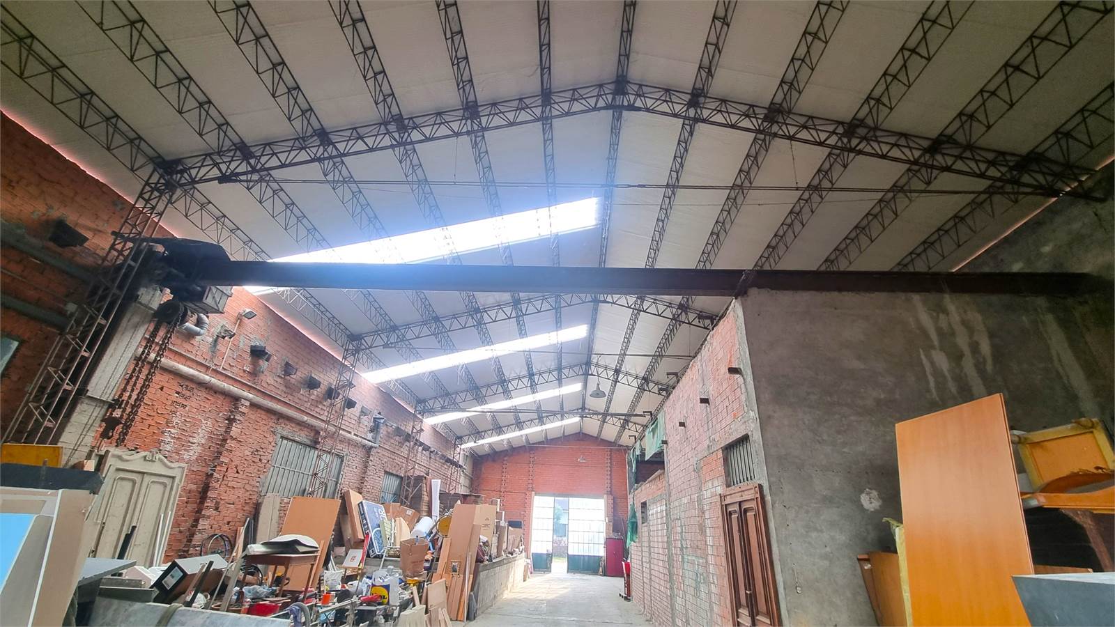 A) Capannone principale, dotato di carro ponte, con due accessi carrai larghi, rispettivamente, mt. 4,18 e mt. 3,70, che sviluppa un'altezza al colmo di mt. 7,90 e un'altezza minima di mt. 6,33.