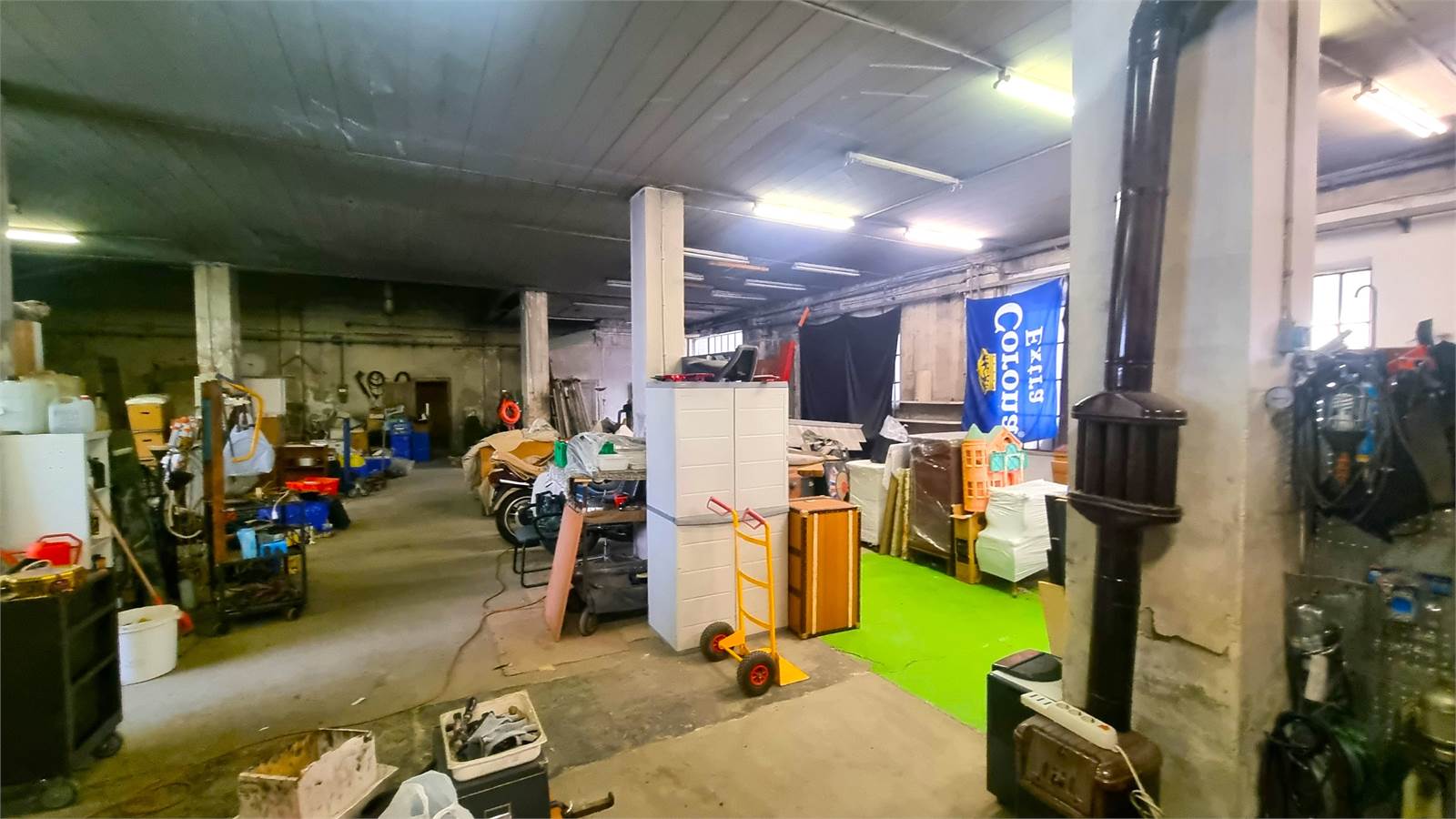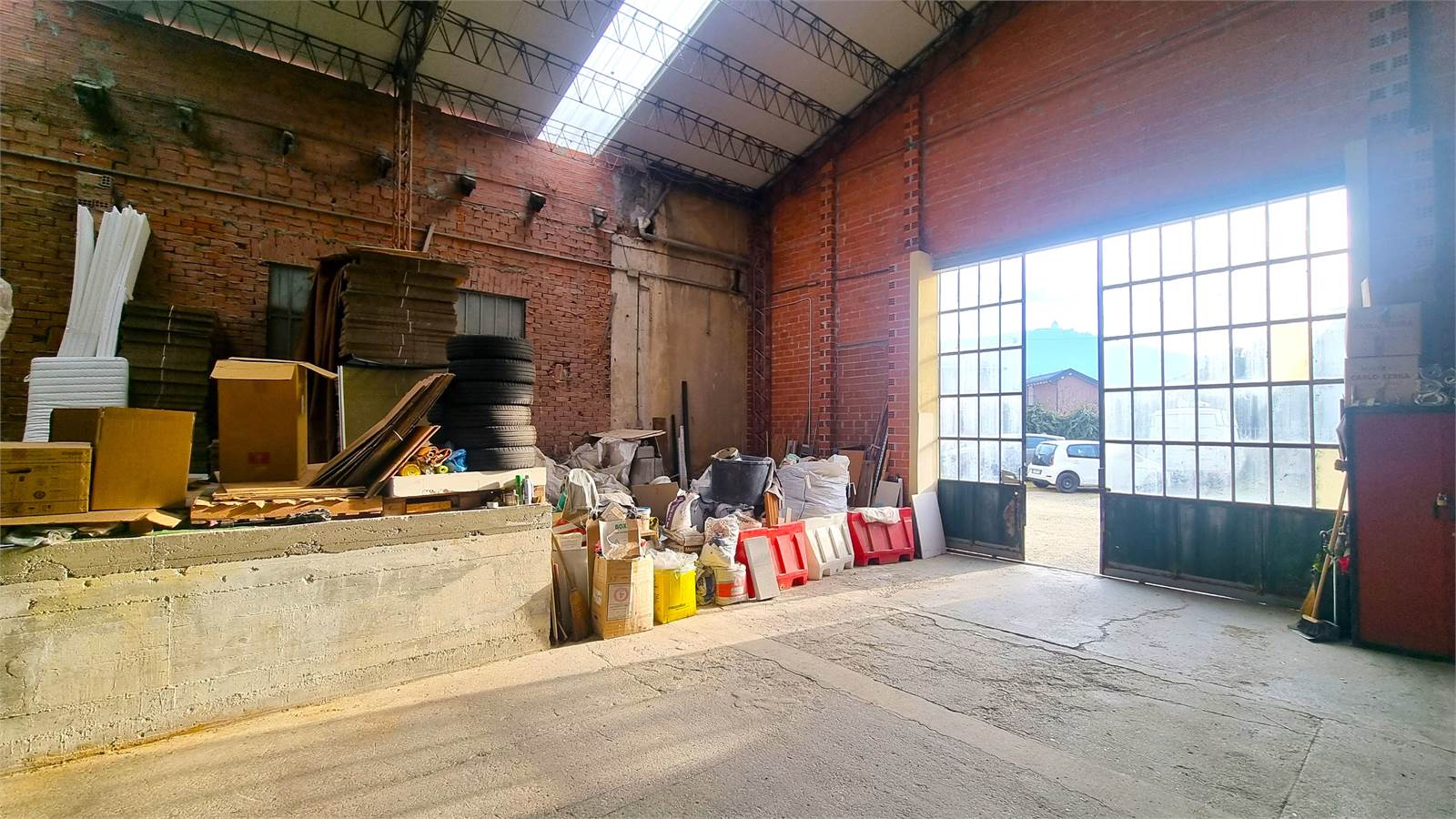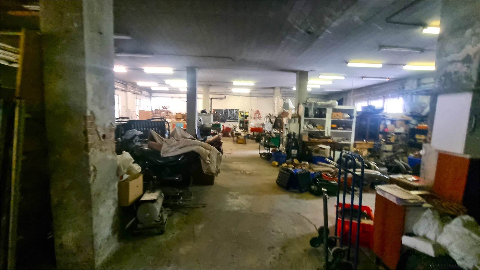 A) Capannone principale, dotato di carro ponte, con due accessi carrai larghi, rispettivamente, mt. 4,18 e mt. 3,70, che sviluppa un'altezza al colmo di mt. 7,90 e un'altezza minima di mt. 6,33.